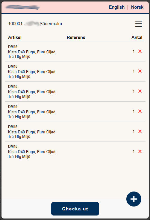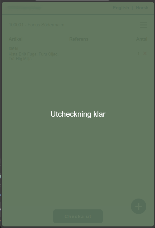 Vid utcheckning får man bekräftelse som stängs efter 5 sekunder.